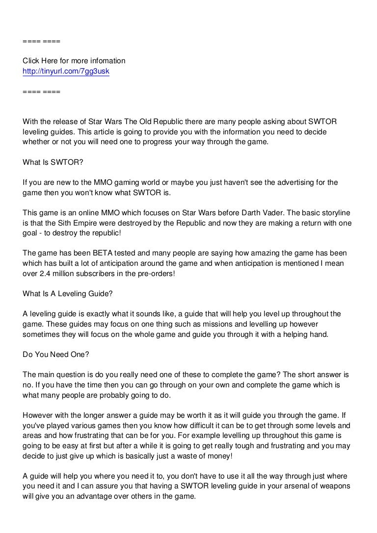 Star Wars The Old Republic The Ultimate Guide Of Guides For